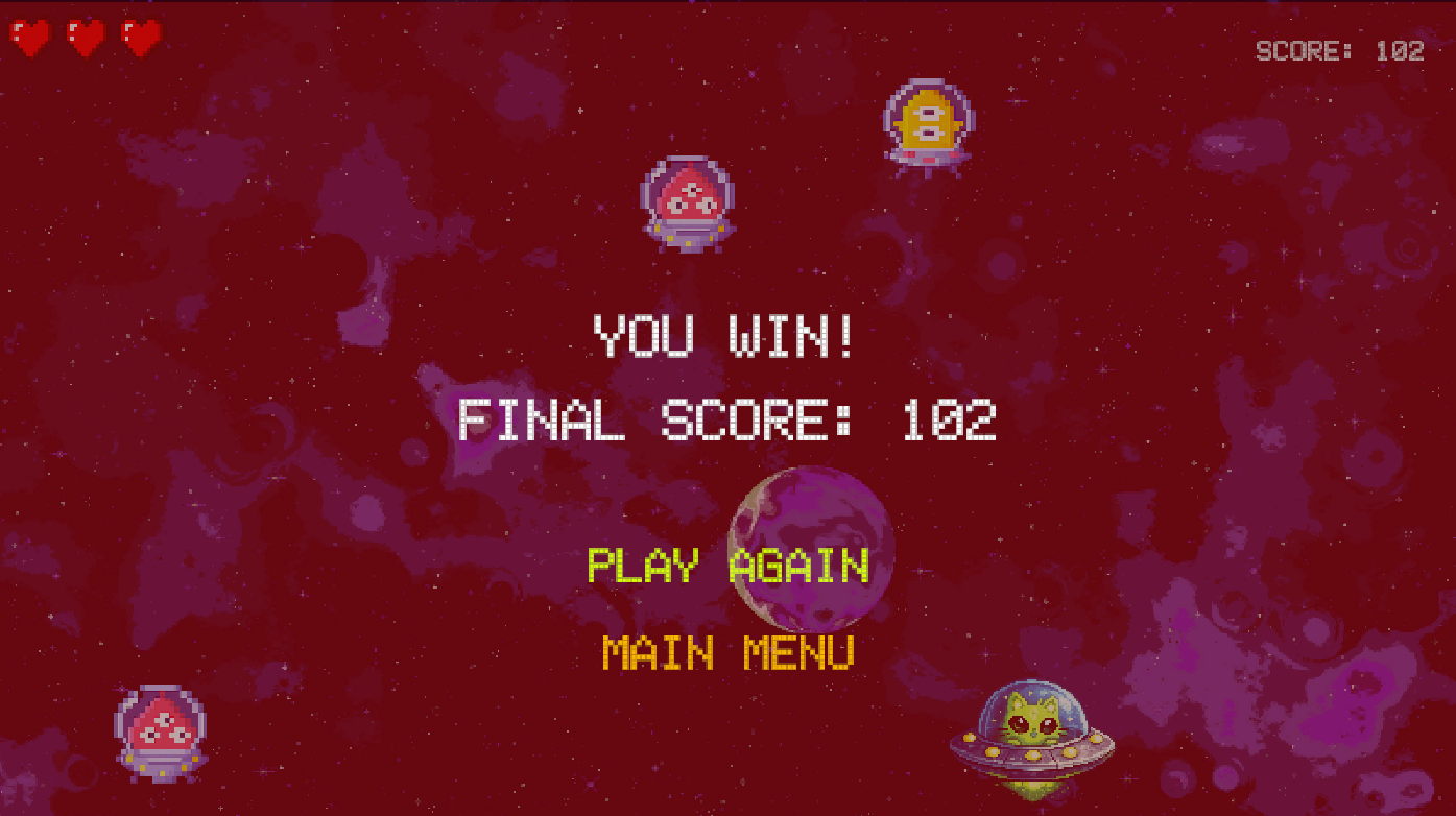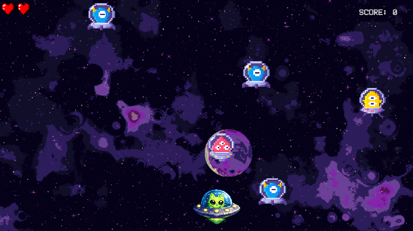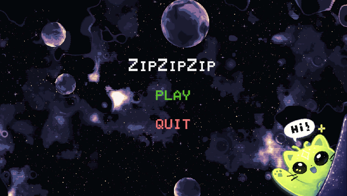 ZipZipZip is a 2D arcade space shooter where you control a cute alien cat piloting a small spaceship through outer space.